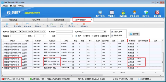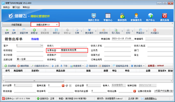 企業(yè)在開采購入庫單和銷售出庫單時都存在開發(fā)票的情況,信管飛RMS軟件發(fā)票管理功能可以讓企業(yè)高效快速地管理發(fā)票信息。發(fā)票管理功能支持對進銷項發(fā)票的領(lǐng)購登記、使用(填開、作廢)等整個流程的管理,并能夠全面記錄銷項增值稅專用發(fā)票、銷項普通發(fā)票以及各種進項發(fā)票的開具信息。 軟件支持按商品明細和單據(jù)開票,已開過