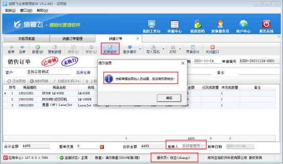 信管飛系列軟件支持新增操作員和設(shè)置操作員權(quán)限,軟件可登錄多個操作員,為避免操作員之間開的訂單被修改,軟件支持控制操作員不能修改其他人開的訂單,本文以“信管飛倉庫管理軟件銷售訂單”為例,示范如何控制操作員不能修改其他人開的訂單。 在功能導(dǎo)航窗點擊“系統(tǒng)管理”—》“操作員及授權(quán)”,打開操作員及授權(quán)界面,選