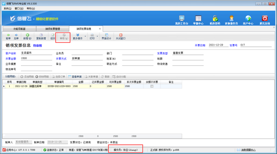 信管飛RMS最新版本V9.3.500增加參數(shù)“發(fā)票審核后更新相關(guān)單據(jù)的開票狀態(tài)”,同時(shí)也支持設(shè)置操作員發(fā)票審核權(quán)限,本篇文章介紹一下進(jìn)銷存管理軟件中如何設(shè)置操作員不可審核發(fā)票。 在功能導(dǎo)航窗點(diǎn)擊“系統(tǒng)管理”—》“操作員及授權(quán)”,打開操作員管理及授權(quán)界面,選擇操作員“張亞”,在其右側(cè)的功能模塊權(quán)限內(nèi)選擇“往來管理”模塊,將“進(jìn)